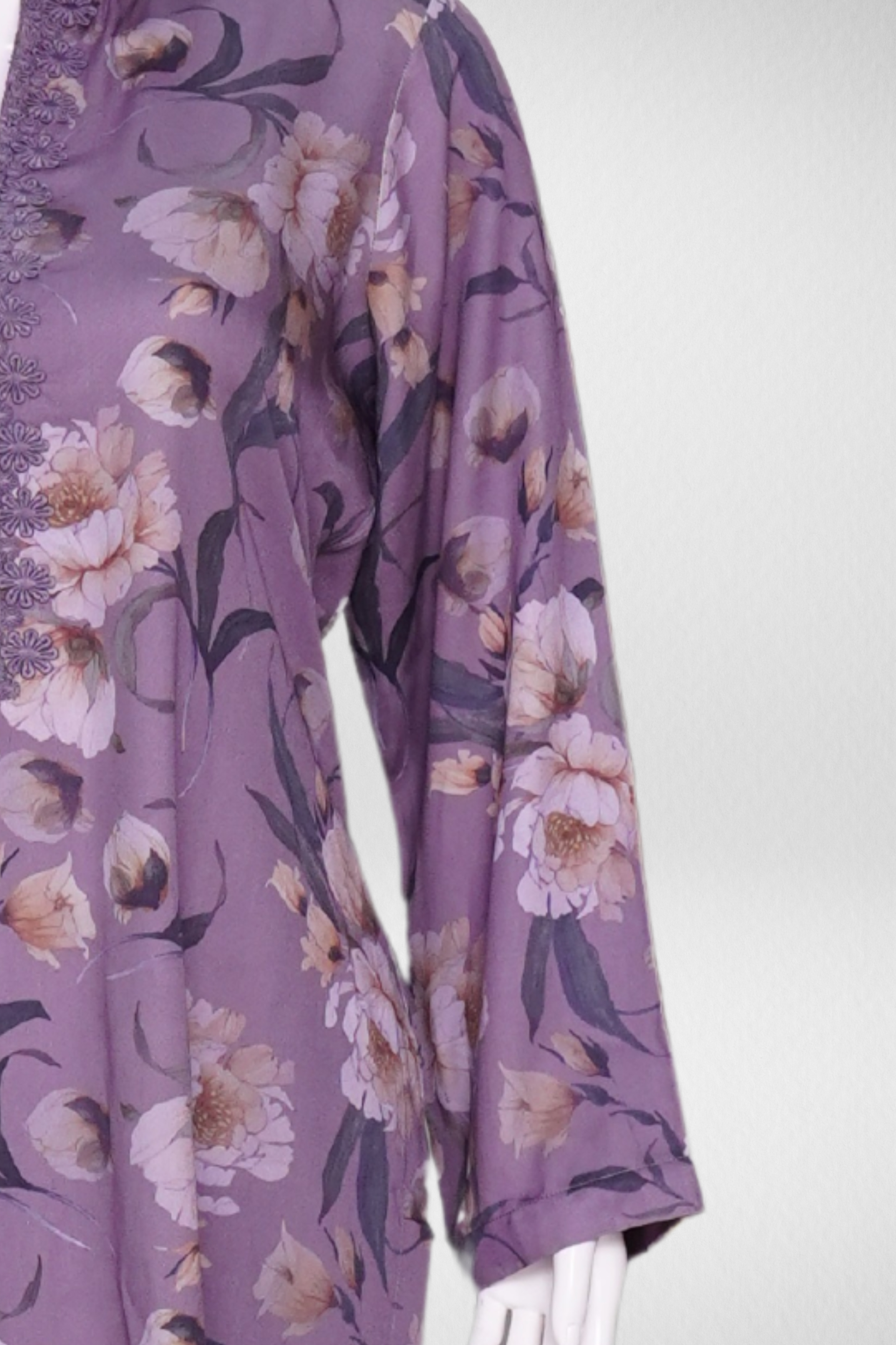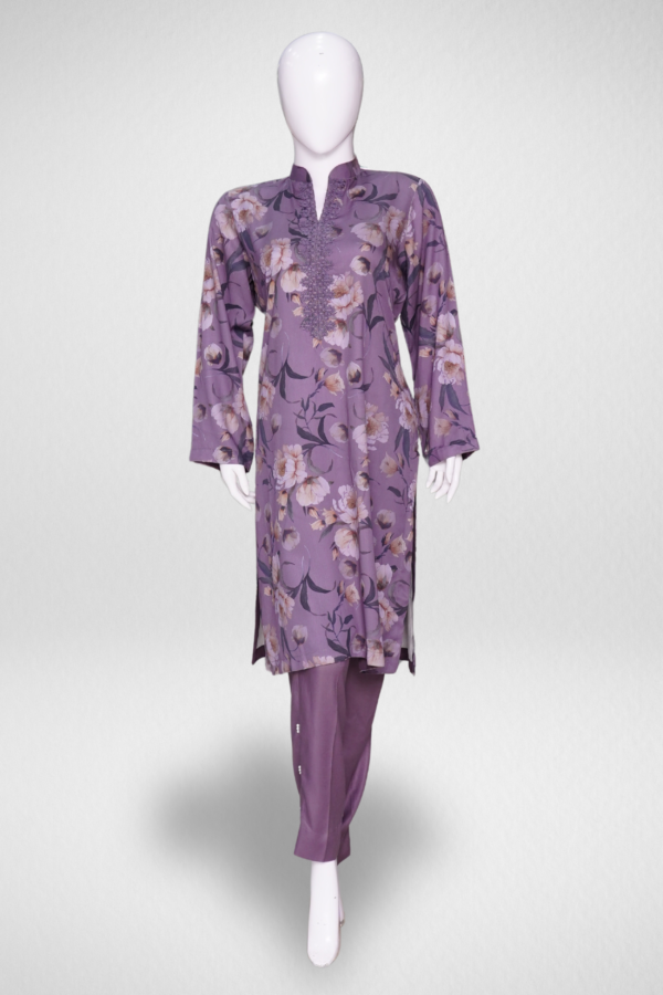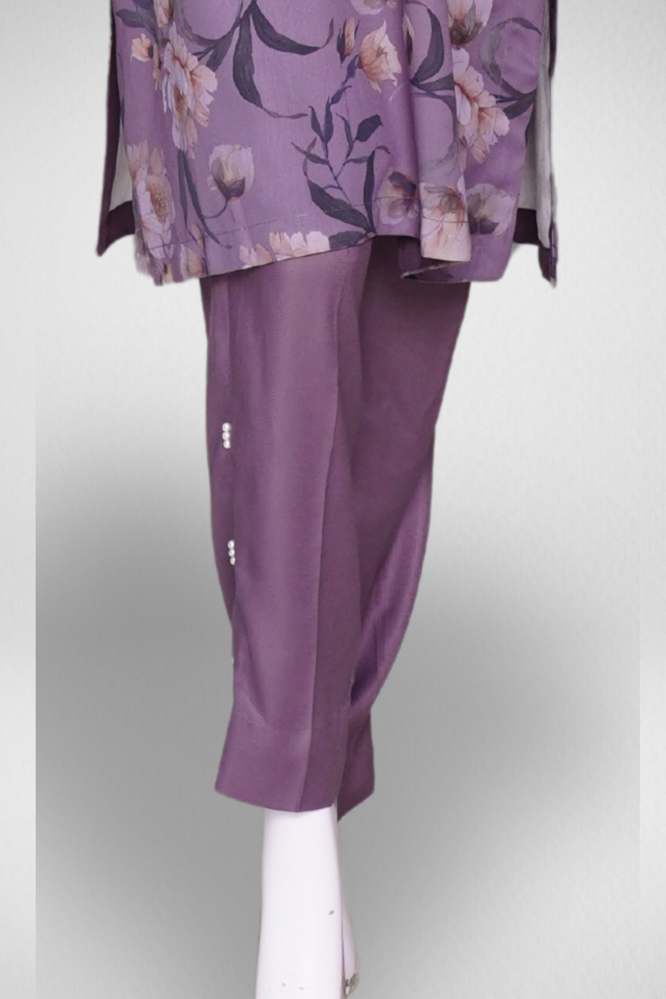 Desigen: The shirt features a round neck and three-quarter sleeves, adorned with embroidery. The straight pants match the shirt in color and material. Without further information, specifics like brand, exact materials, and embellishment details are difficult to determine. However, similar styles are available from brands like Threyas and Breya.
